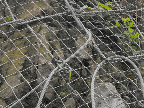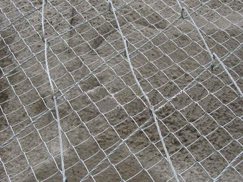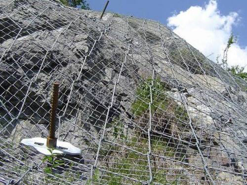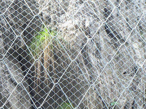 绞索网由高强度防腐钢丝成索后编制,菱形网孔内切圆直径250mm,网片标准规格10×3.5m;系统的开放性,地下水可以自由排泄,避免了由于地下水压力的升高而引起的边坡失稳问题;该系统除对稳定边坡有一定贡献外,同时还能抑制边坡遭受进一步的风化剥蚀,且对坡面形态特征无特殊要求,不破坏和改变坡面原有地貌形态和植被生长条件,其开放特征给随后或今后有条件并需要时实施人工坡面绿化保留了必要的条件,绿色植物能够在其开放的空间上自由生长,植物根系的固土作用与坡面防护系统结为一体,从而抑制坡面破坏和水土流失,反过来又保护了地貌和坡面植被,实现比较好的边坡防护和环境保护目的。