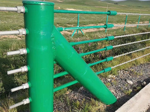美彩国际缆索护栏属柔性结构,车辆碰撞时缆索在弹性范围内工作,可以重复使用,容易修复。立柱间距比较灵活,受不均匀沉陷的影响较小。风景区公路采用缆索护栏较为美观。积雪地区,缆索护栏对扫雪的障碍稍少。但缆索护栏施工复杂,端部立柱损坏修理困难,不适合在小半径曲线路段使用;同时它的视线诱导性较差,架设长度短时不经济。