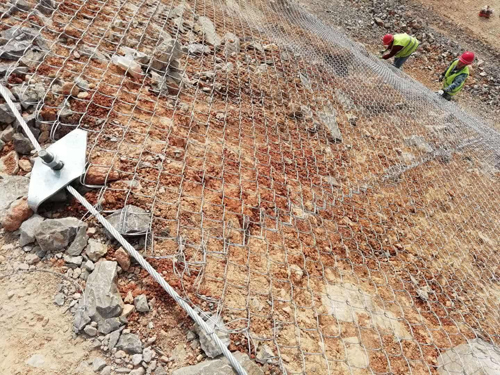 美彩国际喷浆勾花网锚杆一般采用一端带加工螺纹的φ25/28普通螺纹钢筋锚杆,并根据需要进行热镀锌防腐处理;采用勾花网的透空性特效,应用于山体防护,用来岩石,同时采用绿化草种喷洒以达到后期自己固化的效果,是一种绿化与防护的美结合。喷浆勾花网表面除去毛刺、氧化皮、锈斑、砂眼、焊周与焊演等各种宏观缺陷,使工件表面变得比较平整光滑。磨光后工件应当薄出勾花护坡网金属本色。