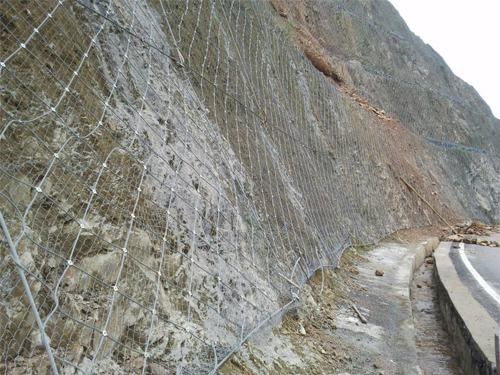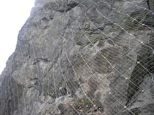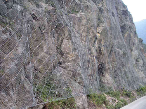 gps2主动防护网是以钢丝绳网为主的各类柔性网覆盖包裹在所需防护斜坡或岩石上,以限制坡面岩石土体的风化剥落或破坏以及为岩崩塌(加固作用),或将落石控制于一定范围内运动(围护作用)。