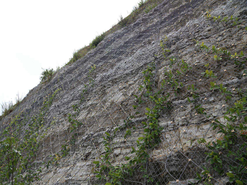 系统的开放性,地下水可以自由排泄,避免了由于地下水压力的升高而引起的边坡失稳问题;该系统除对稳定边坡有一定贡献外,同时还能抑制边坡遭受进一步的风化剥蚀,且对坡面形态特征无特殊要求,不破坏和改变坡面原有地貌形态和植被生长条件,其开放特征给随后或今后有条件并需要时实施人工坡面绿化保留了必要的条件,绿色植物能够在其开放的空间上自由生长,植物根系的固土作用与坡面防护系统结为一体,从而抑制坡面破坏和水土流失,反过来又保护了地貌和坡面植被,实现最佳的边坡防护和环境保护目的。