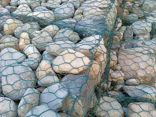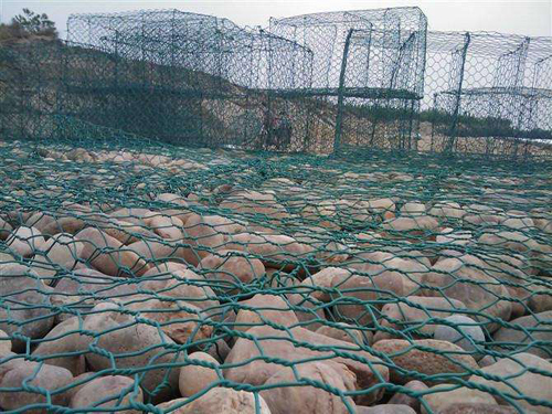 包塑石笼网是在低碳钢丝或铁丝的表面包一层PVC保护层,再编织成各种规格的石笼网。PVC保护层将会大大增加使用寿命,并且选择不同颜色,使其能和周围自然环境相融合。