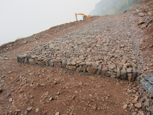 4.锌-5%铝-混合稀土合金钢丝包塑:在锌-5%铝-混合稀土合金钢丝的表面包一层PVC保护层,再编织成各种规格的六角网。这层PVC保护层将会大大增加在高污染环境中的保护,并且通过不同颜色的选择,使其能和周围环境融合。